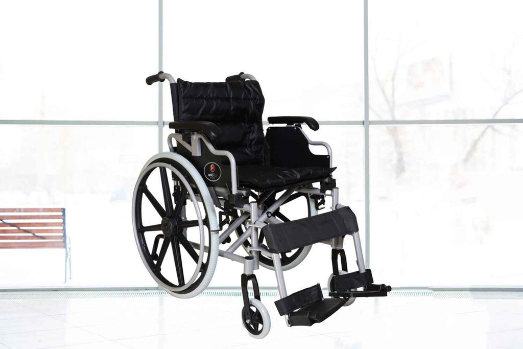 MHL 1002 AX - EVA Manual Chrome Wheelchair with Attendend Brakes & Foam Upholstery